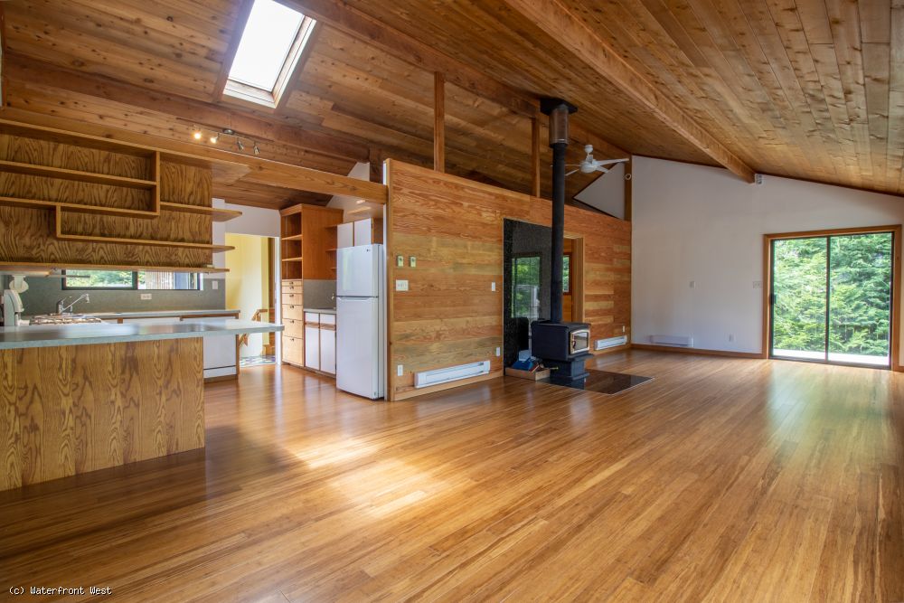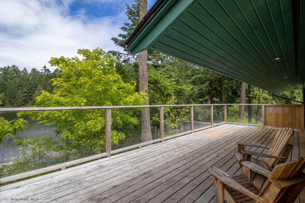 Extremely private 0.43 acres, fully fenced & deer proof, with established gardens & several fruit trees. Level, sunny property, with easy access to the lake frontage. Fantastic dock, perfect for swimming & lounging away the lazy days of summer. The home has been tastefully updated, while keeping its rustic island charm. Use of warm natural wood throughout creates a cozy cabin feeling, but the approximately 1600-sqft, 2+BR, 3BA layout feels surprisingly larger. Separate living spaces are ideal for home office or separate guest accommodation. Giant wrap around deck on the lake side, a private balcony off the primary BR, plus a 3rd deck off the kitchen all make for fantastic inside outside living spaces & you can follow the sun all day long. The icing on the cake is the detached guest studio with loft, combined with a covered area for storage & parking. The perfect place for family & friends to enjoy for generations!