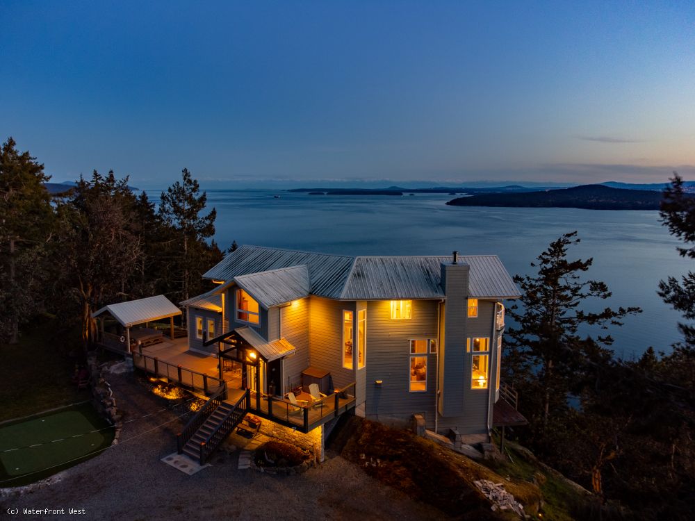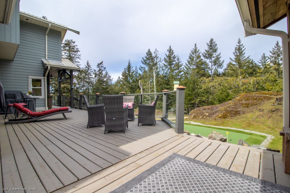 Extremely private 10-acre South facing oceanfront estate, with seemingly endless views over Swanson Channel, the Olympic Peninsula & beyond. The serenity in this natural setting where eagles glide above & orcas swim below is stunning in every aspect. Approximately 2600-sqft, 3+BR, 3BA, with open plan living on two spacious levels, offering flexibility & comfort for both family & guests. Massive, vaulted ceilings, with dramatic views from all principal rooms. Over 1600-sqft of sun-soaked decks, complete with covered hot tub. There's even a putting green! This is most certainly a one-of-a-kind opportunity in the Southern Gulf Islands.